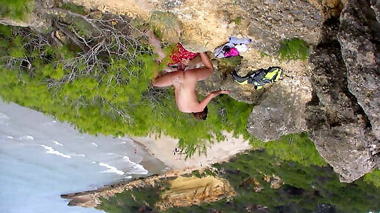 Riskanter Booties oberhalb des oeffentlichen Strandes