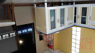 Nudist housekeeper Regina Noir cooking at the kitchen. Naked maid makes dumplings. Naked cooks. boulder-holder 3