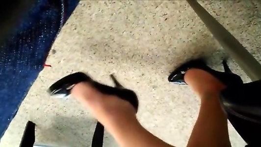 candid collegue shoeplay ses high-heeled slippers elle sais et en rajoute