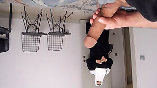 Public Schlong Flash Neighbor was surprised to see a guy jacking off but helped him cum
